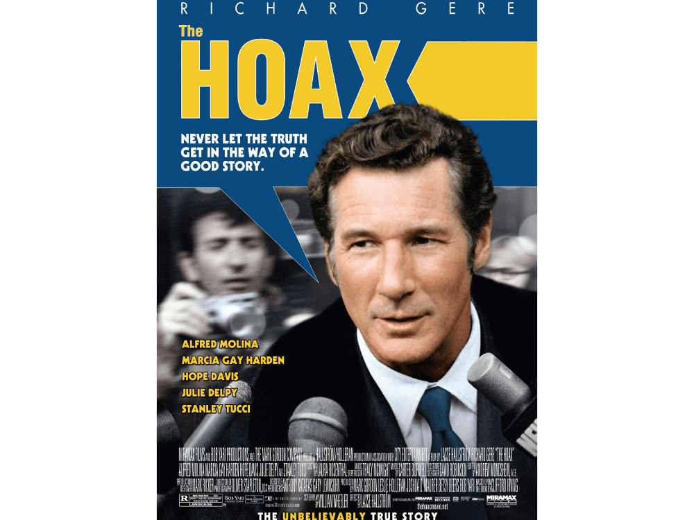 What seems like a trifle of a flick grows on you. This is the story of hack author Clifford Irving, who in the early 1970s forged a biography of reclusive Howard Hughes and almost got away with it. Director Lasse Halström (“The Shipping News,” “Casanova”) makes good use of Richard Gere as Irving and the underrated Alfredo Molina as his bumbling best friend and wannabe writer Dick Suskind.