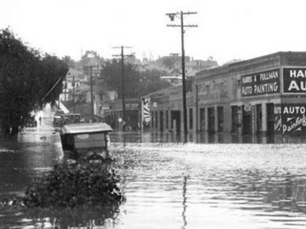 The sighing is loud enough to wake the ghost of Charles Hatfield, a sewing machine salesman-turned-rainmaker who was ruined by his nature-fixing promises. In 1915, drought-stricken San Diego promised Hatfield $10,000 if he’d make rain enough to fill a local reservoir. He built a tower near a lake containing a “moisture acceleration apparatus,” and soon after… the rain began. Ark-like rain. So much rain that dams overflowed. One even broke, producing an inland tsunami that killed at least 50 people, most of them Japanese immigrant fishermen whose boats were smashed.