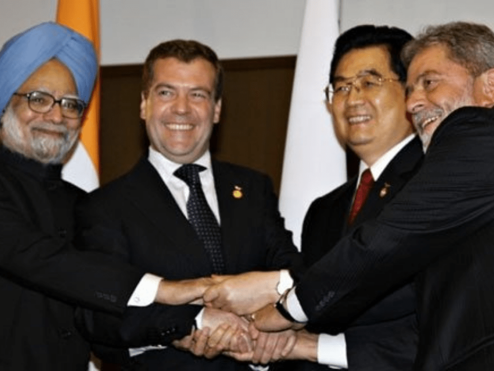 India’s Manmohan Singh, Dmitri Medvedev of Russia, China’s Hu Jintao, and former Brazilian President Luiz Inácio Lula da Silva at the April 2010 BRIC summit.