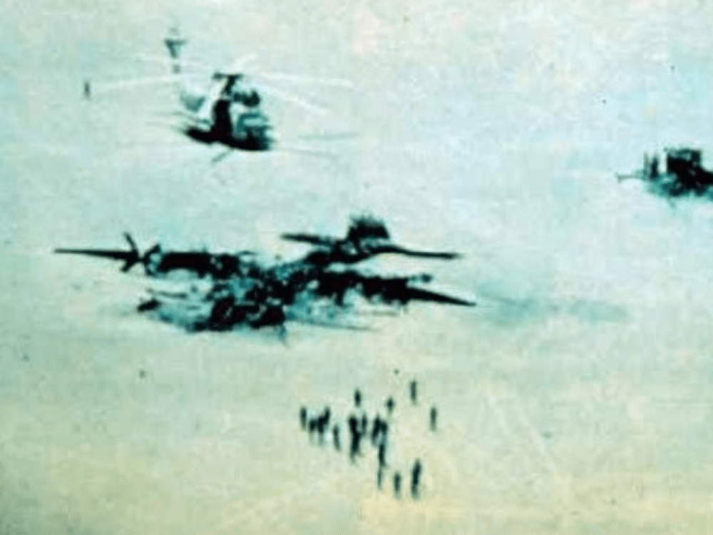 A botched fuel exchange triggered an explosion that blew up one of the transports, killing eight men and severely burning two others. Next came the retreat. Five high-tech helicopters were left behind in the desert, the mission’s classified logs in one of them.