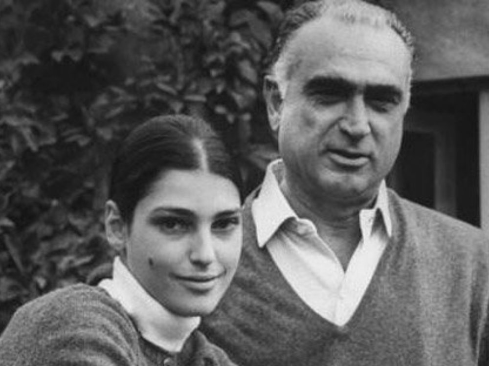 Author Luigi Barzini Jr. with his model and actress daughter Benedetta in garden of their country home in 1965.