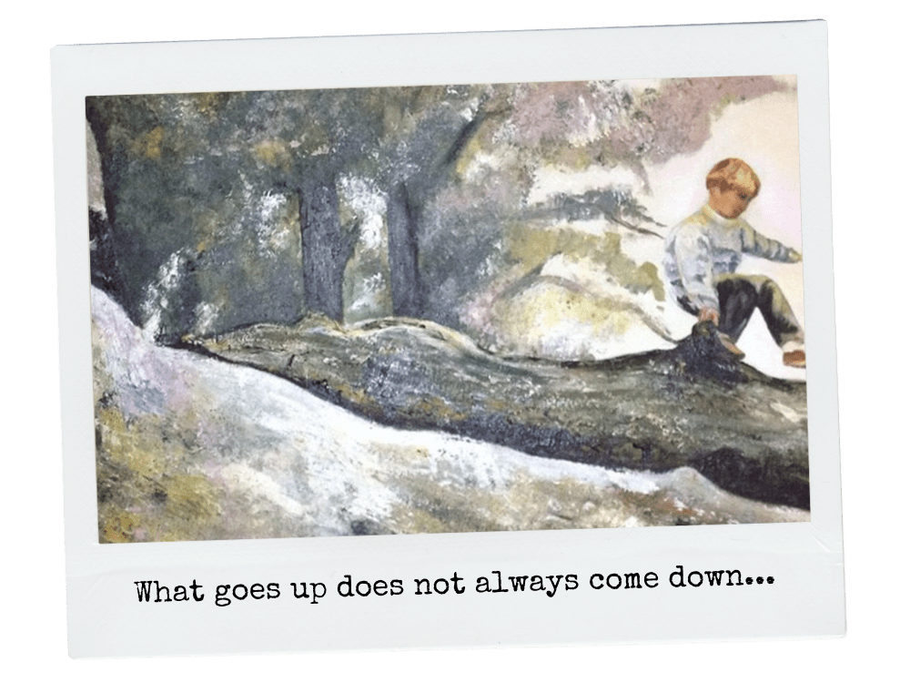 This is when I started sobbing. I was a boy stuck atop a tree without descent-enabled paws and claws.