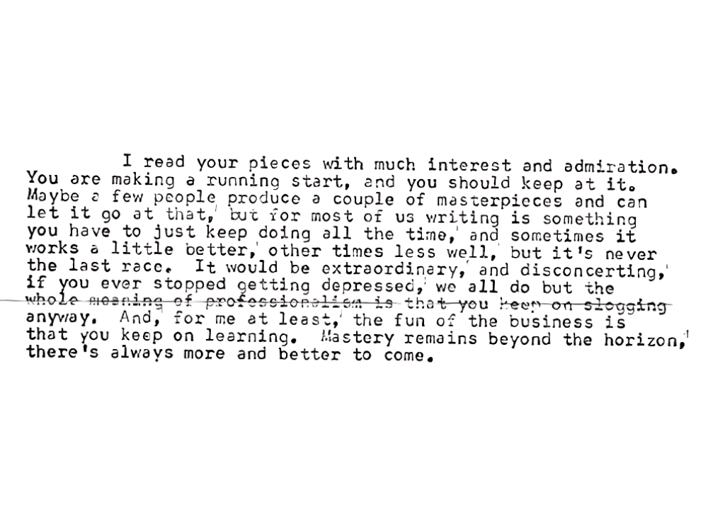She dabbled well, while also earning a reputation as a dogged, precise thinker not prone to worrying much about being liked. This made her eloquent response to a simple and shy fan letter all the more impressive, particularly since — unlike most such responses — it took time out to provide not only real encouragement but also offered advice about the difficulties of the profession, and writing itself.